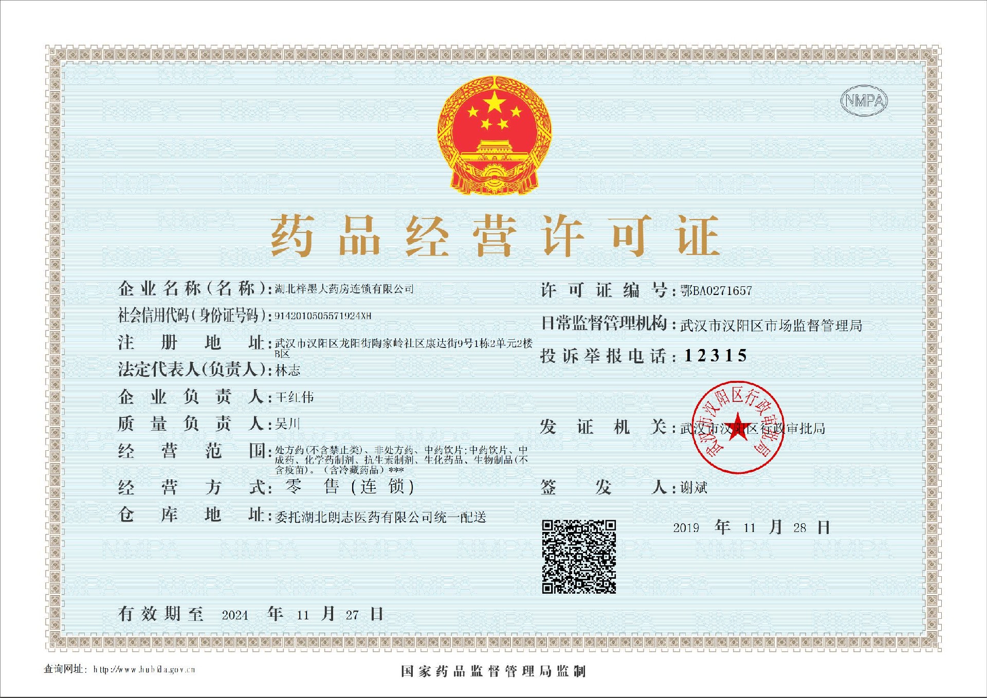 公司名称:湖北梓墨大药房连锁有限公司